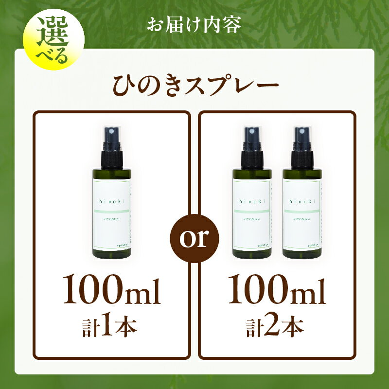 【ふるさと納税】【選べる本数】都農町製造『 ひのきスプレー (100ml)』 計1本〜2本 檜 ヒノキ 香り 天然 リラックス リフレッシュ 国産 エッセンシャル オーガニック アロマ フレグランス 人気 ギフト おすすめ 贈り物 プレゼント 宮崎県 都農町 送料無料