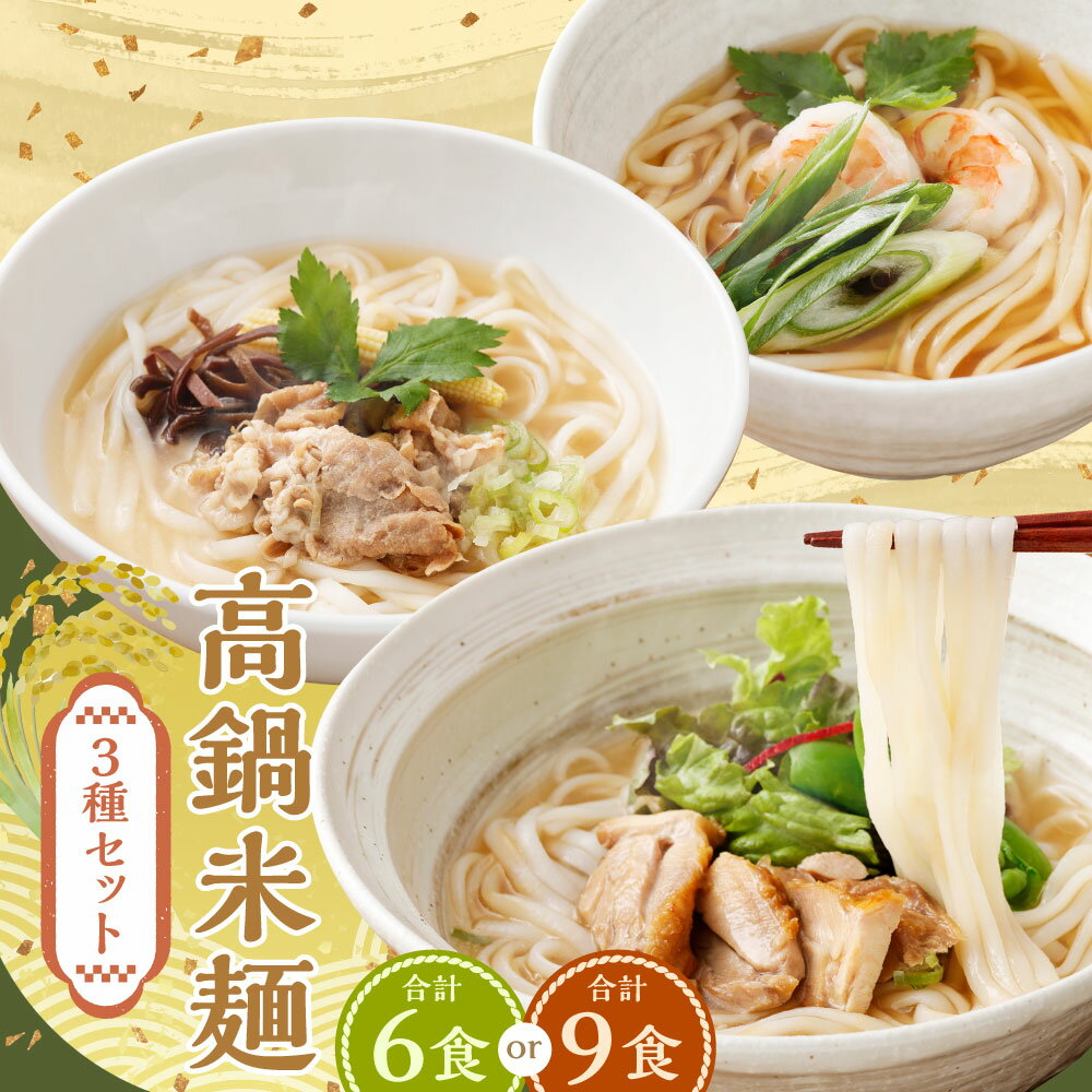 - 【ふるさと納税】<高鍋米麺 3種セット 6~9食入り>翌月末迄に順次出荷 だし チキン ポーク 各2~3食 3種 米麺 米粉麺 麺 詰合せ 食べ比べ セット グルテンフリー 出汁 鶏 豚 麺類 国産 冷凍 宮崎県 高鍋町 送料無料