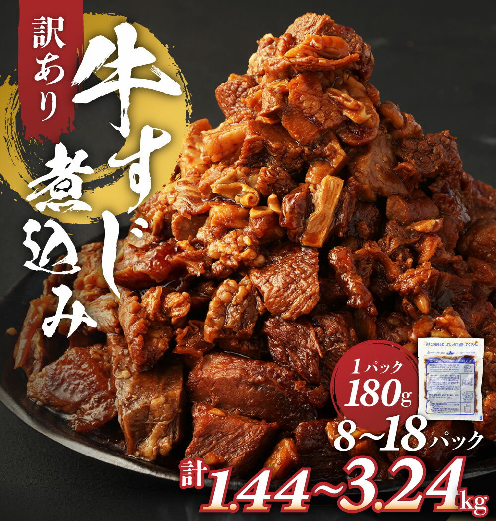 【ふるさと納税】<選べる内容量> 牛すじ 煮込み ( 8パック / 10パック / 12パック / 16パック / 18パック) 1パック180g 牛筋 牛スジ スジ 牛 肉 お肉 牛肉 すじ 筋 牛すじ煮込み おつまみ おかず パック 冷凍 訳アリ 訳あり 醤油味 しょうゆ味 熊本県 水上村 送料無料