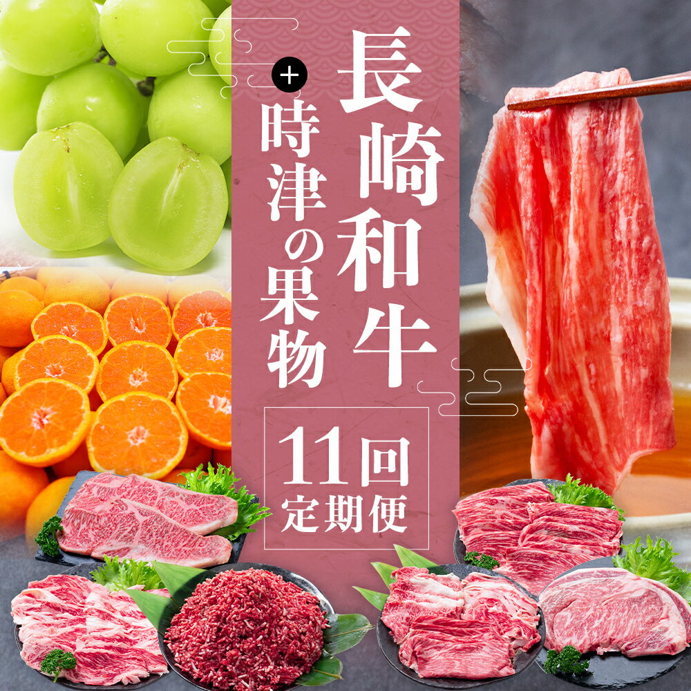 【ふるさと納税】【11回定期便】長崎和牛+時津の果物 和牛 和牛 牛肉 お肉 もも カルビ ロース サーロイン リブロース ステーキ 焼肉 すき焼き しゃぶしゃぶ 赤身 霜降り フルーツ くだもの 果実 みかん 巨峰 不知火 シャインマスカット 国産 九州 長崎県産 時津町 送料無料