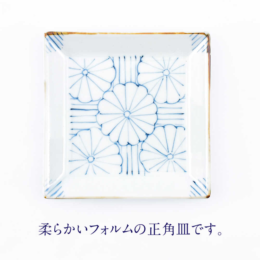 - 【ふるさと納税】【ロマ佐賀】【有田焼】菊紋4.5寸角皿4枚組 / 焼き物 磁器 / 佐賀県 / 株式会社まるぶん[41APCD079]