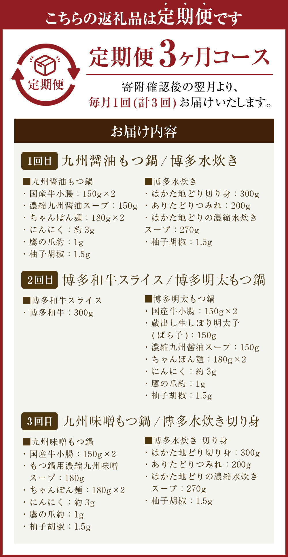 - 【ふるさと納税】【3ヶ月定期便】博多の名物「国産牛 上ホルモン もつ鍋」&「博多水炊き」&「博多和牛スライス」3回コース 定期便 もつ鍋 水炊き 鍋 ホルモン すき焼き しゃぶしゃぶ ザブトン 肩ロース 牛肉 鶏肉 お取り寄せ 福岡 冷凍 送料無料