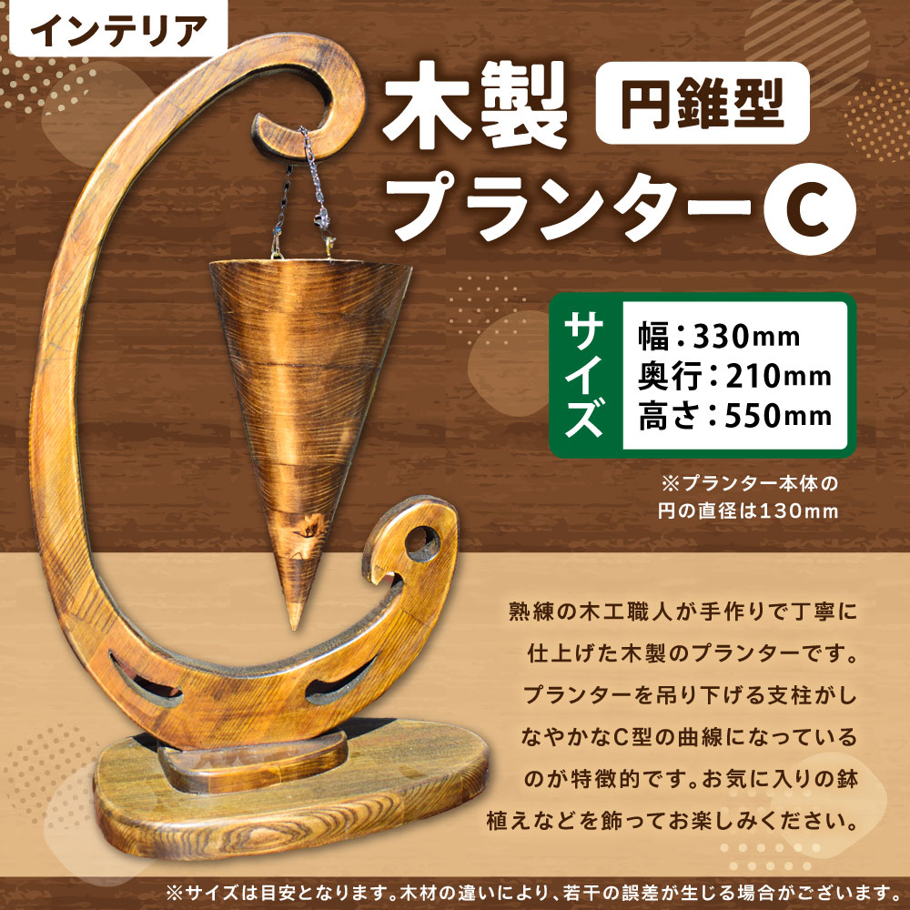 - 【ふるさと納税】木製プランター“C"【円錐型】 横幅330mm×奥行き210mm×高さ550mm 木製 プランター 木工職人 職人 インテリア コレクション アート アート作品 置物 手作り 福岡県 糸田町 送料無料