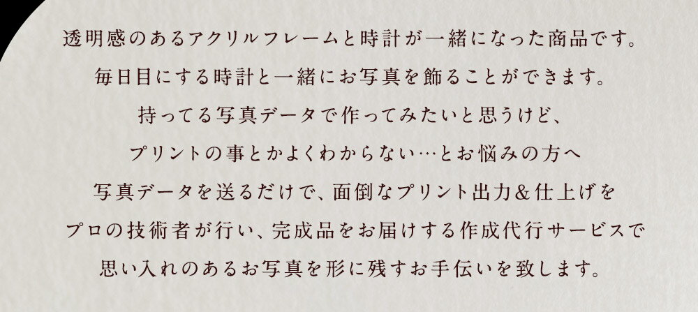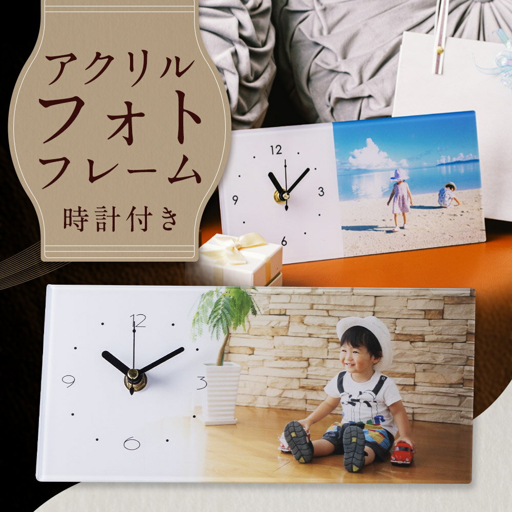 - 【ふるさと納税】時計付き アクリル フォトフレーム 1枚 120mm×250mm 写真 フォト 思い出 コラージュ インテリア 作成代行 代行サービス 母の日 父の日 敬老の日 イベント 雑貨 日用品 筑後市 送料無料