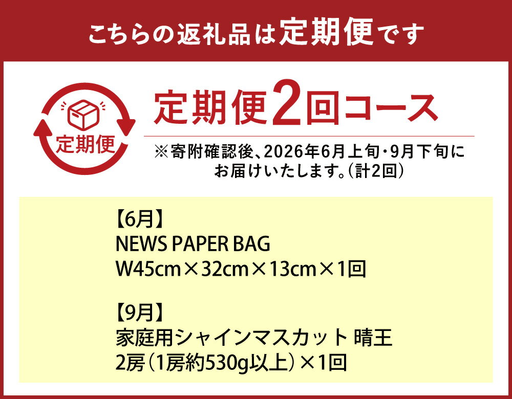- 【ふるさと納税】【年2回定期便】NEWS PAPER BAG(INDIGO)+家庭用シャインマスカット晴王 2房(1房約530g以上) セット ニュースペーパーバッグ 大型ショルダーバッグ 鞄 カバン かばん シャインマスカット フルーツ くだもの 【2026年6月上旬~9月下旬まで発送予定】