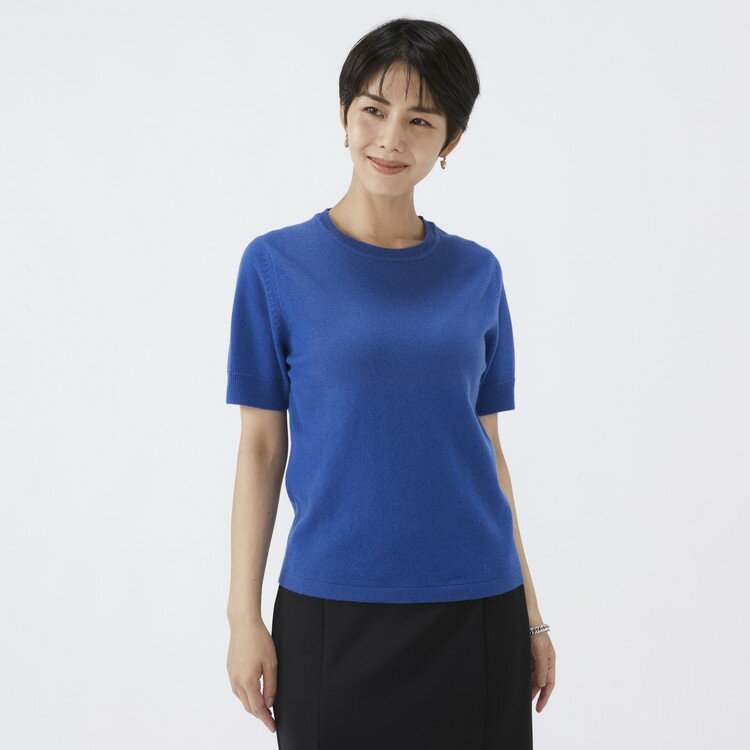 - 【ふるさと納税】【選べるサイズ】日本製 カシミヤ100% レディース クルーネック半袖 ブルー