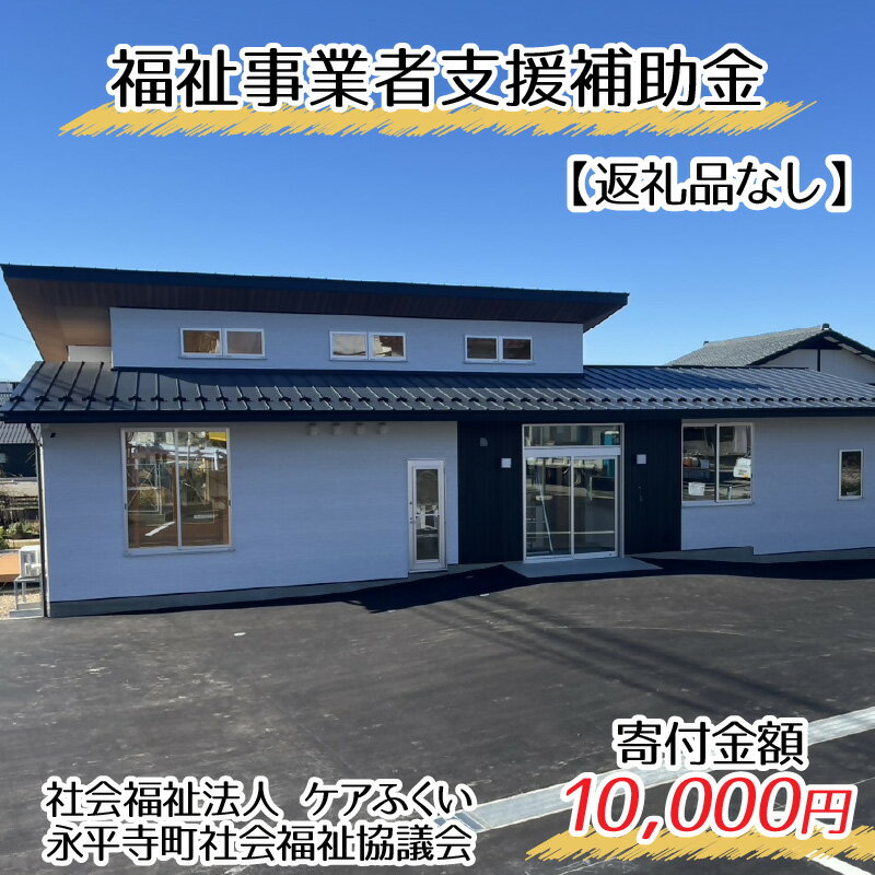- 【ふるさと納税】【お礼の品なし】福祉事業者支援補助金(社会福祉法人 ケアふくい/病児保育 にじいろ)【寄付金額 10,000円】 / 永平寺町