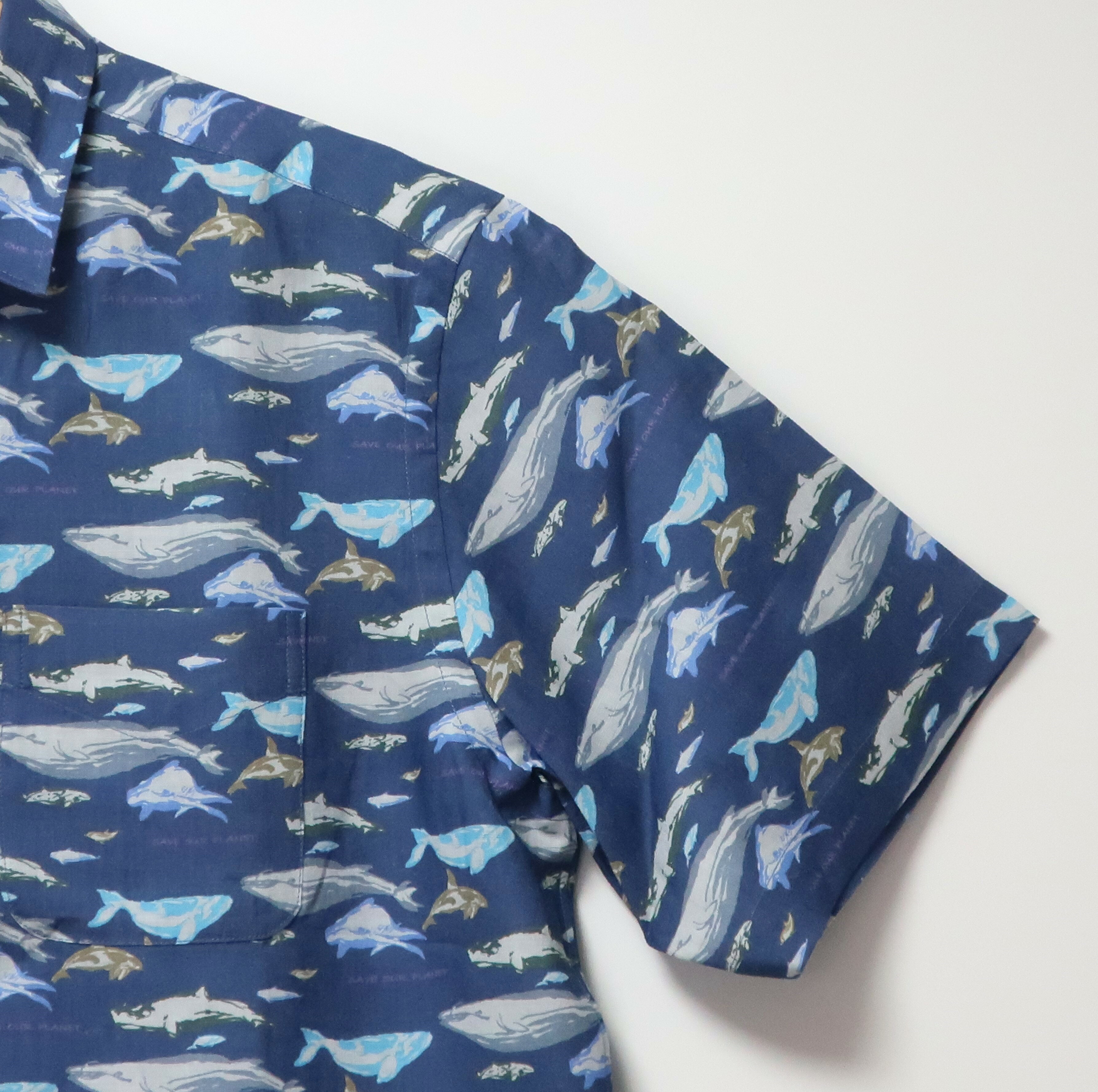 - 【ふるさと納税】CLOFT 麻100%半袖プリントシャツ”縁起の良いクジラ柄”マリン柄(C/#28 ブルー)M 新宿区 シャツ カジュアル オリジナル 柄 上質 こだわり プレゼント 半袖 ブルー 青 0139-030-S07-4