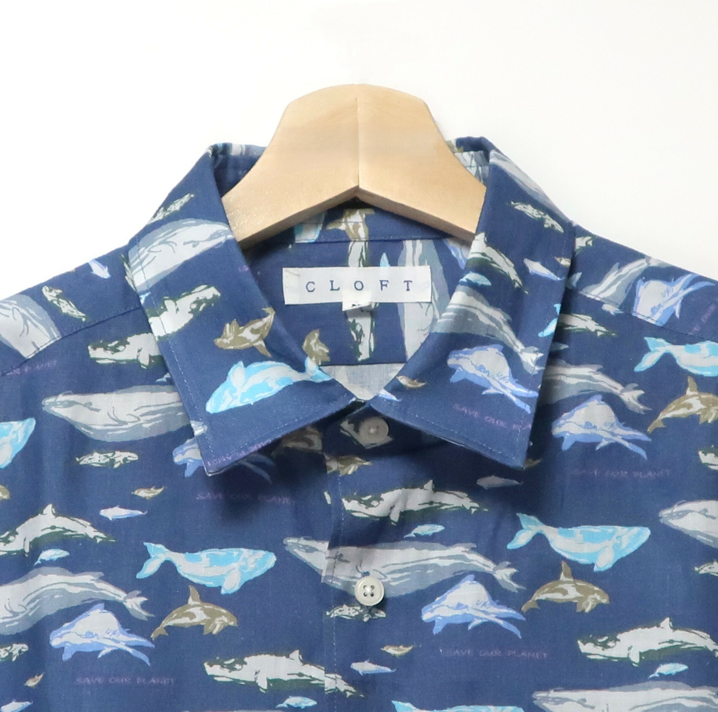 【ふるさと納税】CLOFT 麻100%半袖プリントシャツ”縁起の良いクジラ柄”マリン柄(C/#28 ブルー)M 新宿区 シャツ カジュアル オリジナル 柄 上質 こだわり プレゼント 半袖 ブルー 青 0139-030-S07-4