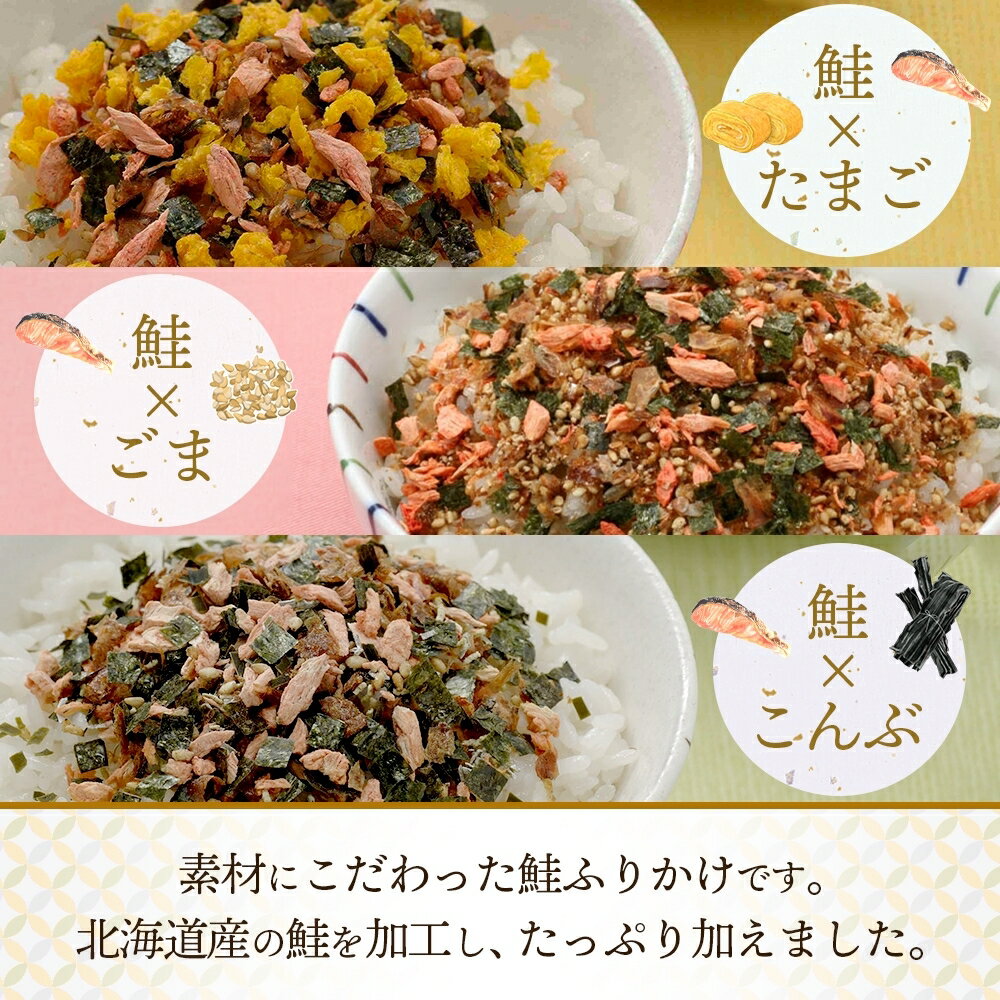 - 【ふるさと納税】鮭ふりかけ 3種 (たまご 、 ごま 、 こんぶ) 各2袋 計6袋 / ふりかけ 調味料 鮭 さけ 卵 胡麻 昆布 かつお のり 食品 ご飯 ご飯のお供 おにぎり 卵焼き 個包装 お弁当 お弁当のお供 セット 北海道 小樽市 常温 送料無料
