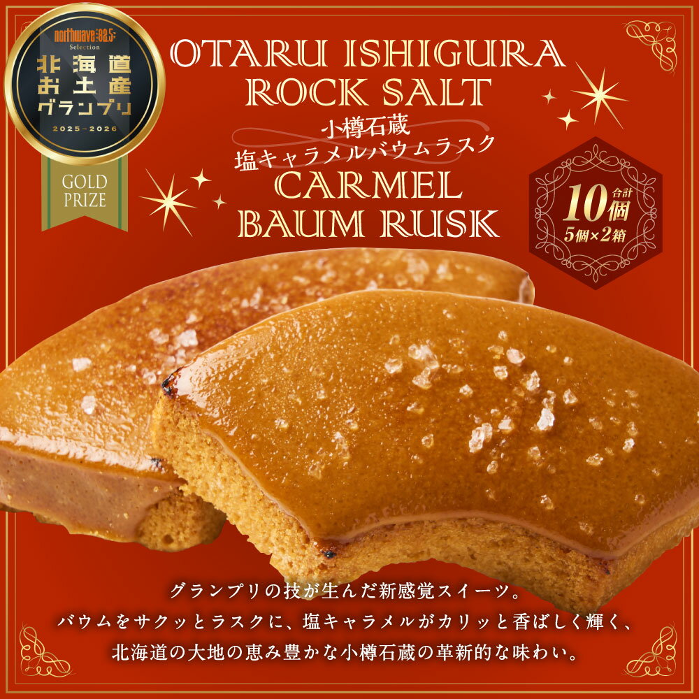 - 【ふるさと納税】【北海道お土産グランプリ金賞受賞】 小樽石蔵 塩キャラメルバウムラスク 5個セット ×2箱 合計10個 / 洋菓子 お菓子 ラスク バウムラスク バウムクーヘン 塩キャラメル 香ばしい