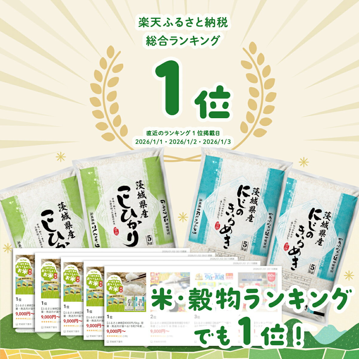 - 【ふるさと納税】9000円/5kg~ 容量・発送月が選べる! 令和7年産 コシヒカリ にじのきらめき 食べ比べ 5kg / 10kg / 20kg 茨城県産 10000円 1万円