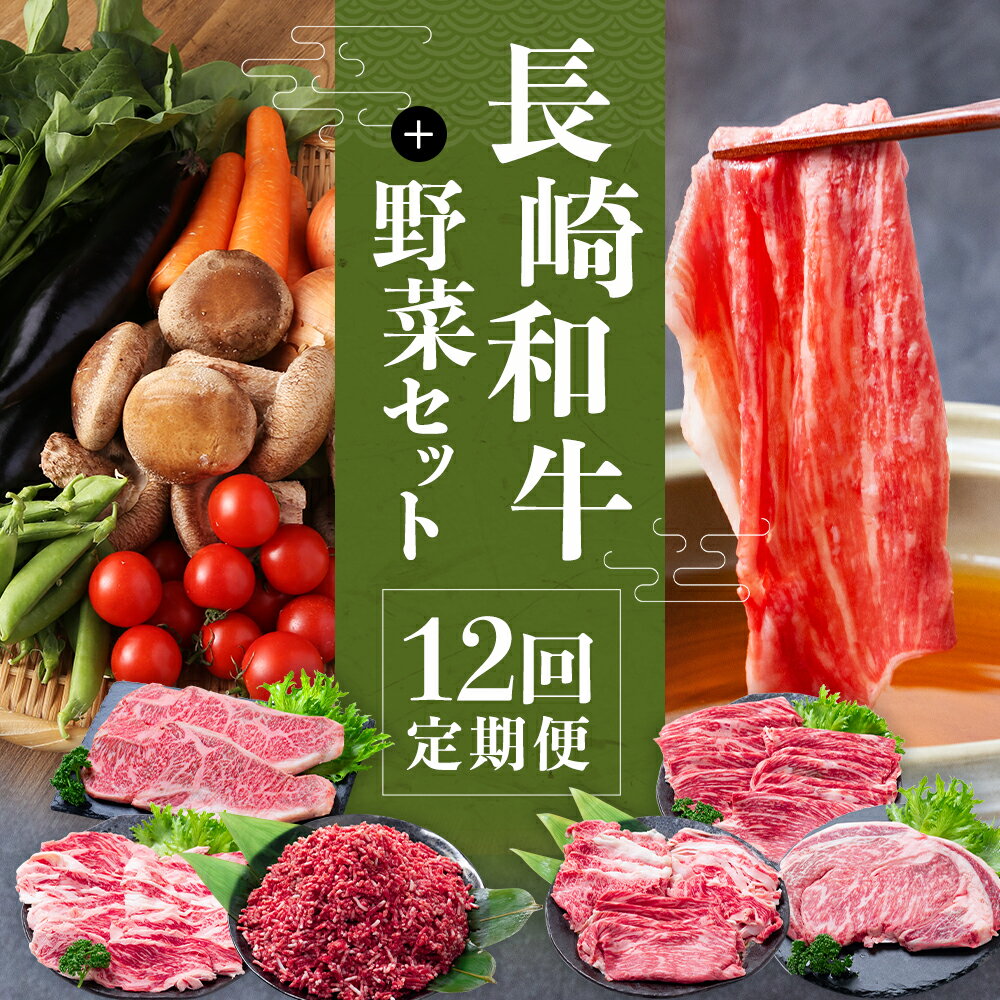 【ふるさと納税】【12回定期便】長崎和牛+野菜セット7品目 和牛 牛肉 お肉 もも カルビ ロース 牛ミンチ サーロイン リブロース ステーキ 焼肉 すき焼き しゃぶしゃぶ 赤身 霜降り やさい 長崎県産 国産 九州 長崎県 時津町 送料無料