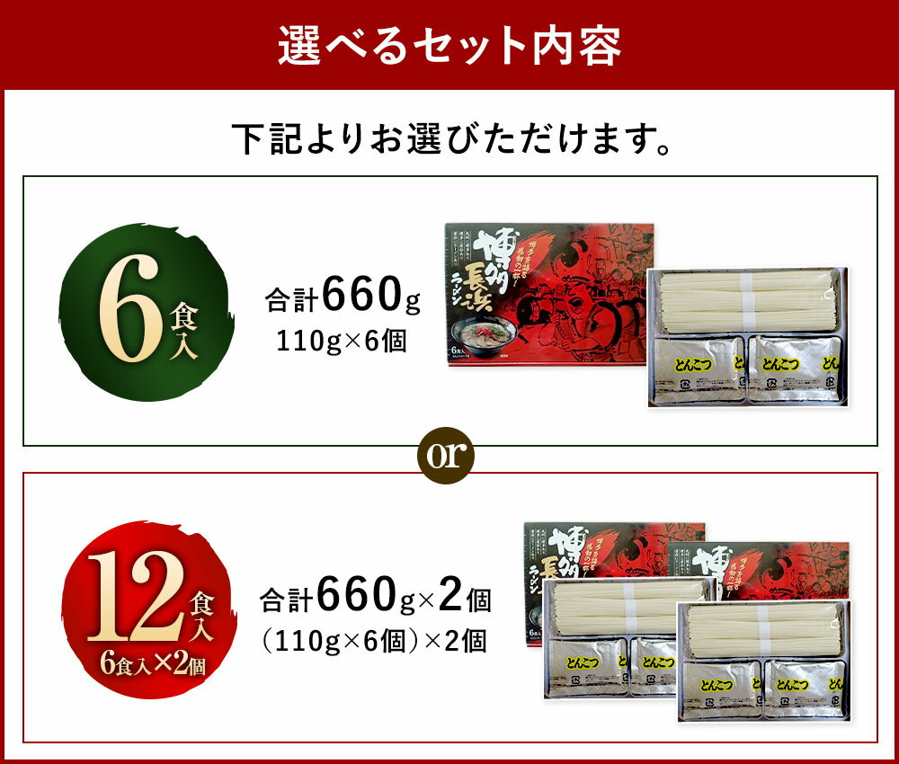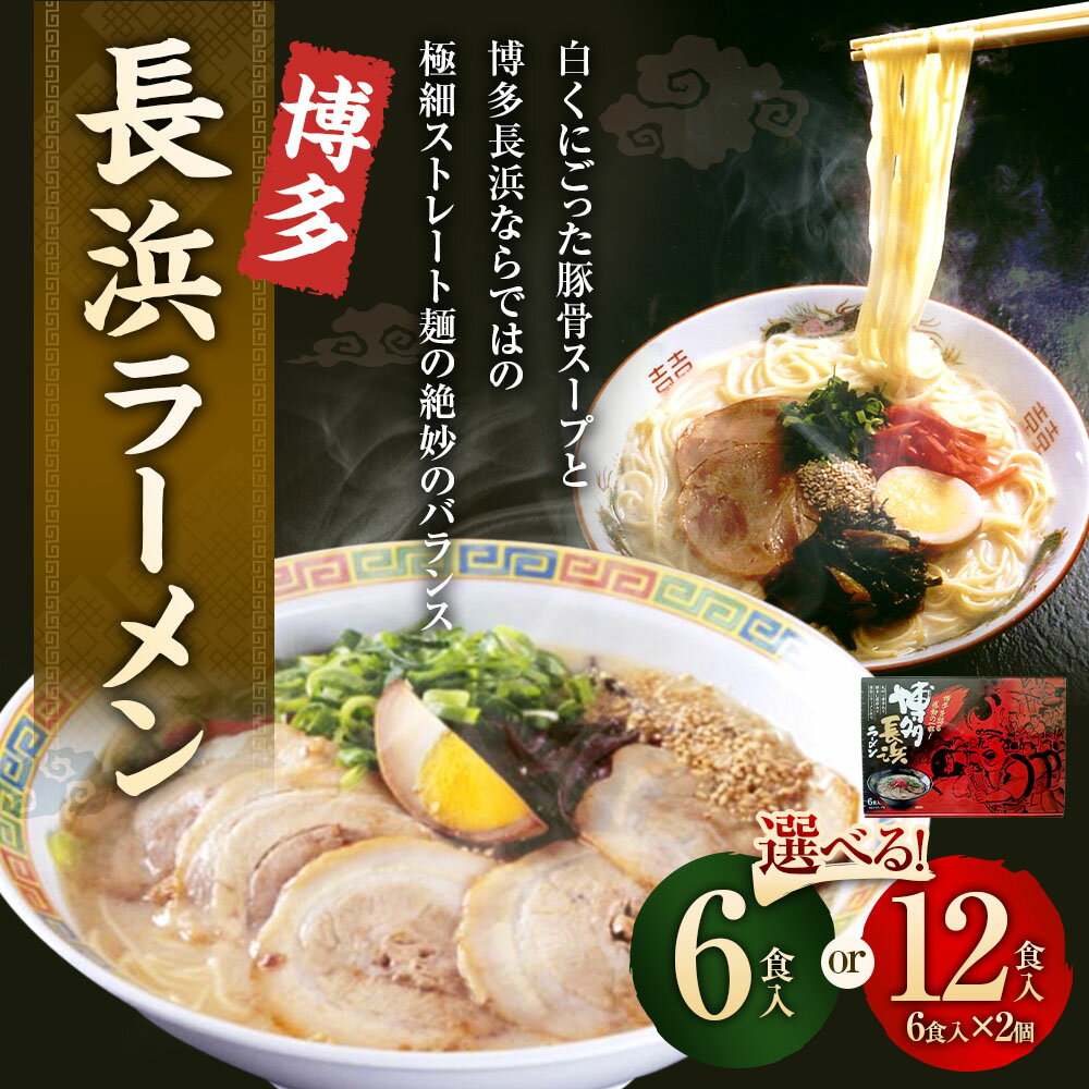 【ふるさと納税】博多長浜ラーメン 〈選べる内容量〉6食入り / 12食入り (6食入り×2 ) ラーメン 拉麺 豚骨 豚骨ラーメン とんこつラーメン 極細 ストレート麺 福岡県 大任町 送料無料