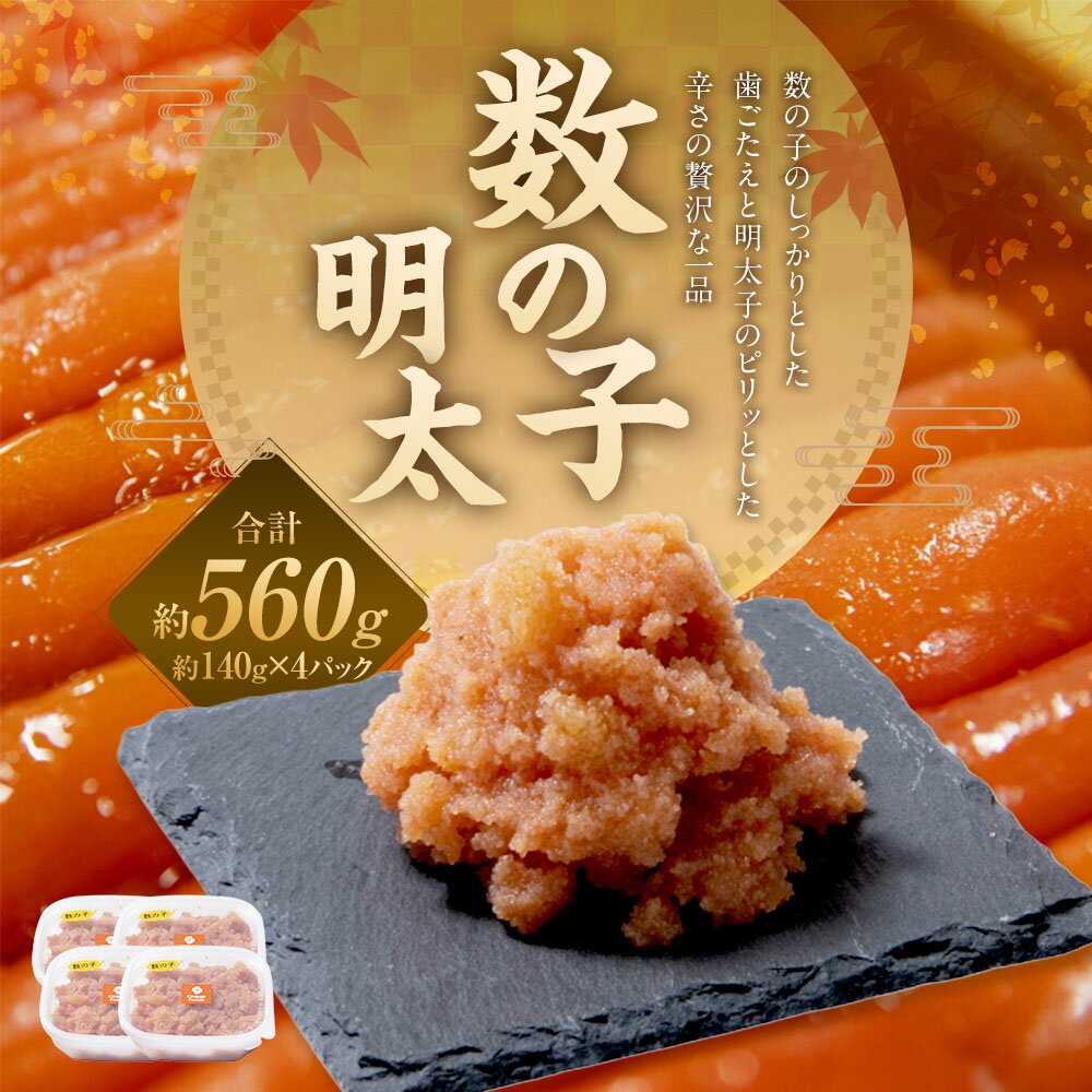 【ふるさと納税】数の子明太 計560g(140g×4パック) 数の子 かずのこ カズノコ めんたいこ 明太子 魚卵 魚介類 水産物 小分けパック ご飯のお供 ごはんのお供 酒のお供 おつまみ お正月 縁起物 冷凍 国産 福岡県 直方市 送料無料