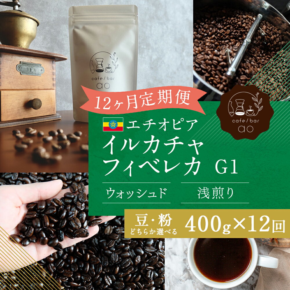 【ふるさと納税】【12か月定期便】エチオピア イルガチャフィベレカG1 ウォッシュド (浅煎り) 200g×2袋 豆/粉 選べる 12回 定期便 コーヒー コーヒー豆 スペシャリティコーヒー 珈琲 自家焙煎 飲料 送料無料
