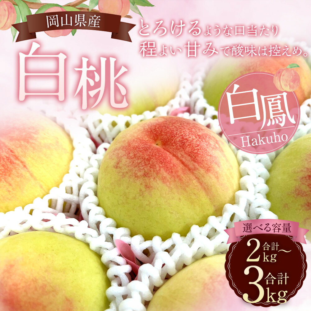 - 【ふるさと納税】<選べる容量>岡山県産 白桃 白鳳 (約2kg箱(6~8玉)/約3kg箱(8~10玉))桃 もも モモ 果物 くだもの フルーツ おやつ デザート 冷蔵 岡山県 美咲町 送料無料【2026年7月上旬~下旬発送予定】