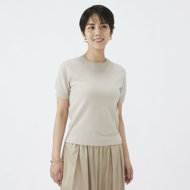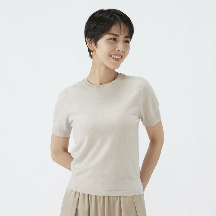 - 【ふるさと納税】【選べるサイズ】日本製 カシミヤ100% レディース クルーネック半袖 ライトベージュ