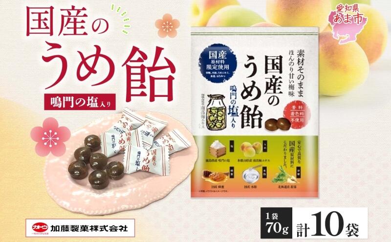- 【ふるさと納税】加藤製菓 国産うめ飴 70g×10個 飴 あめ キャンデイー 個包装 国産 日本産 素材の味 素材 梅 はちみつ 甜菜糖 南高梅 酸味 まろやか 優しい味わい 持ち歩き お取り寄せ 送料無料 愛知県 あま市