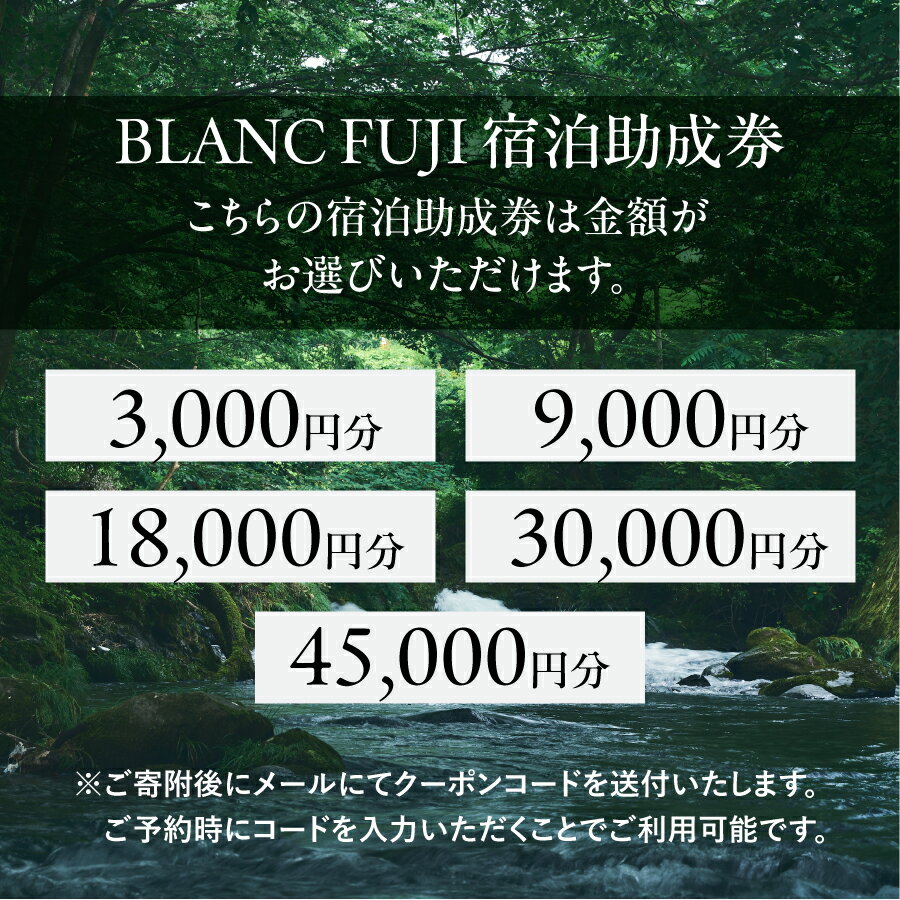 【ふるさと納税】 助成券 クーポン 選べる 宿泊助成券 3,000円分 ~ 45,000円分 旅行 ホテル 全室独立型 ヴィラ BLANC FUJI 露天風呂 プライベートサウナ 宿泊 観光スポットアクセス良好 富士山 河口湖 忍野八海 自然 地産地消