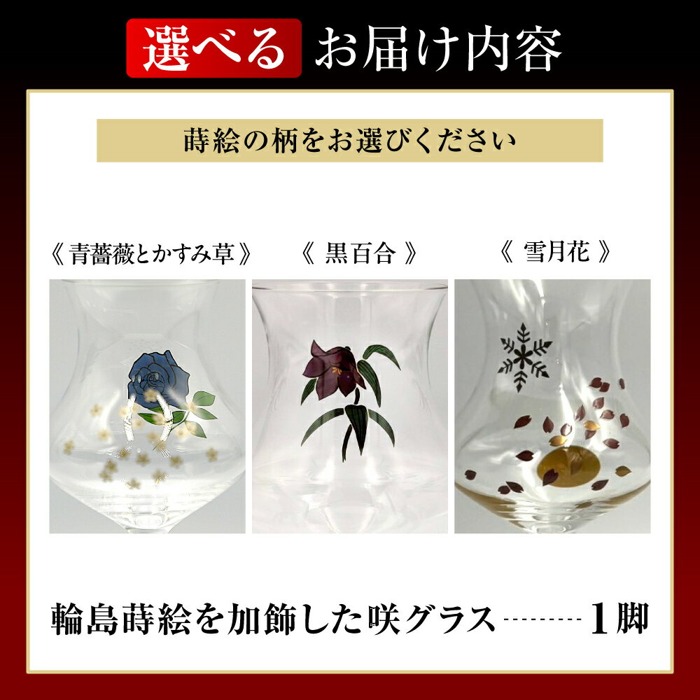 - 【ふるさと納税】蒔絵を加飾した咲グラス 1脚 ( 選べる : 青薔薇とかすみ草 / 黒百合 / 雪月花 )| グラス コップ ウイスキーグラス ワイングラス 食器 雑貨 日用品 プレゼント ギフト 贈答 能登 石川県 輪島市