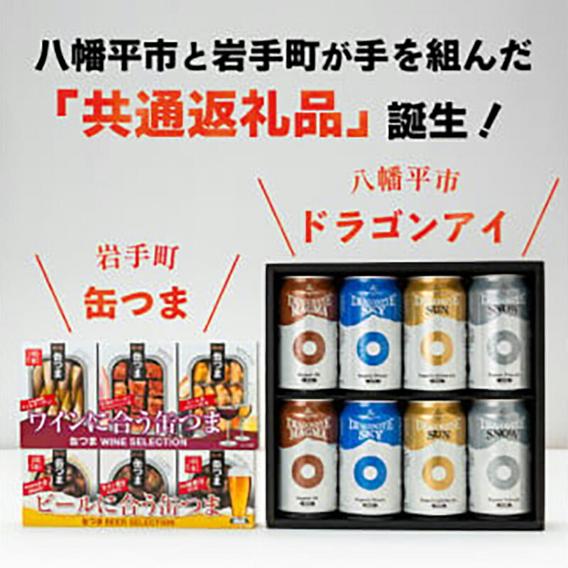 - 【ふるさと納税】【岩手町×八幡平市 共通返礼品】おつまみ缶詰とクラフトビール みちのくご褒美セット ビール クラフトビール 地ビール ドラゴンアイ 缶つま 缶詰 岩手缶詰 かき燻製 牛タン焼き 豚軟骨 つまみ 酒 ギフト セット 岩手町 八幡平市 カメイ 暁ブルワリー