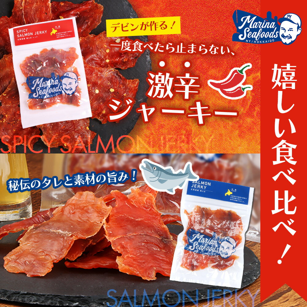 - 【ふるさと納税】【秘伝のタレ&こだわりの旨辛】 サーモンジャーキー 食べ比べセット 計6袋|北海道 スパイシー 食べ比べ 珍味 旨辛 鮭とば ご当地 ジャーキー おつまみ 国産 ビール お酒 アテ 辛党 マリナシーフーズ ふるさと納税 羽幌町 オンライン申請 マイページ【02155】