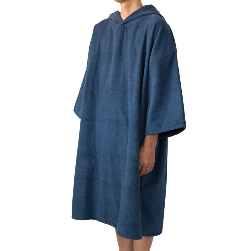 - 【ふるさと納税】サウナポンチョ ネイビー 泉州タオル 男女兼用 フリーサイズ 大型 ポンチョ 綿100% 日本製 着替え 防寒 大阪府 泉佐野市 送料無料 ※ 中厚 パイル 無地 吸水力 柔らかい 耐久性 単色