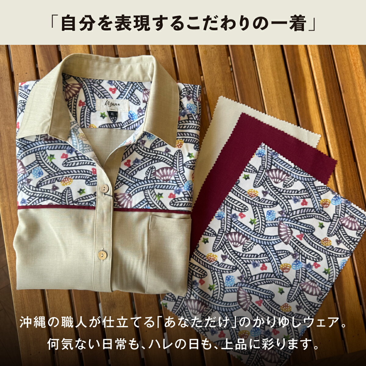 - 【ふるさと納税】日本製 Kizuna セミオーダー かりゆしウェア (オーダーキット) メンズ レディース 選べる デザイン 襟型 紅型 柄 カラー サイズ S M L 2L 3L | 半袖 アロハ シャツ クールビズ ビジネス カジュアル ギフト 贈り物 お仕立券 | 沖縄県 宜野湾市 送料無料