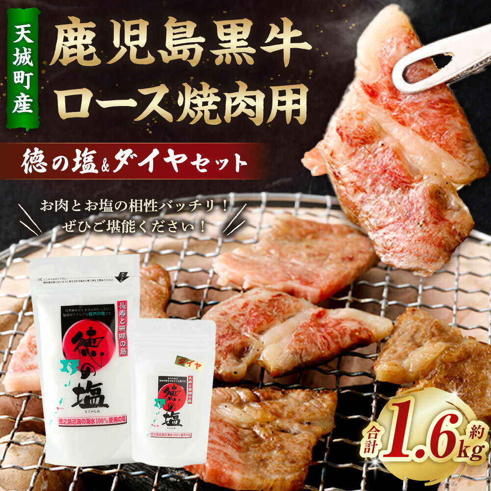 【ふるさと納税】【セット】 天城町産 鹿児島育ち 鹿児島 黒牛 ロース 焼肉用 計1.6kg (400g×4パック) 徳の塩・ダイヤ セット 計約230g 総計約1.83kg 黒毛和牛 ロース肉 国産 焼き肉 BBQ バーベキュー お肉 牛肉 お塩 大粒の塩 塩 ソルト 海塩 鹿児島県 天城町 送料無料