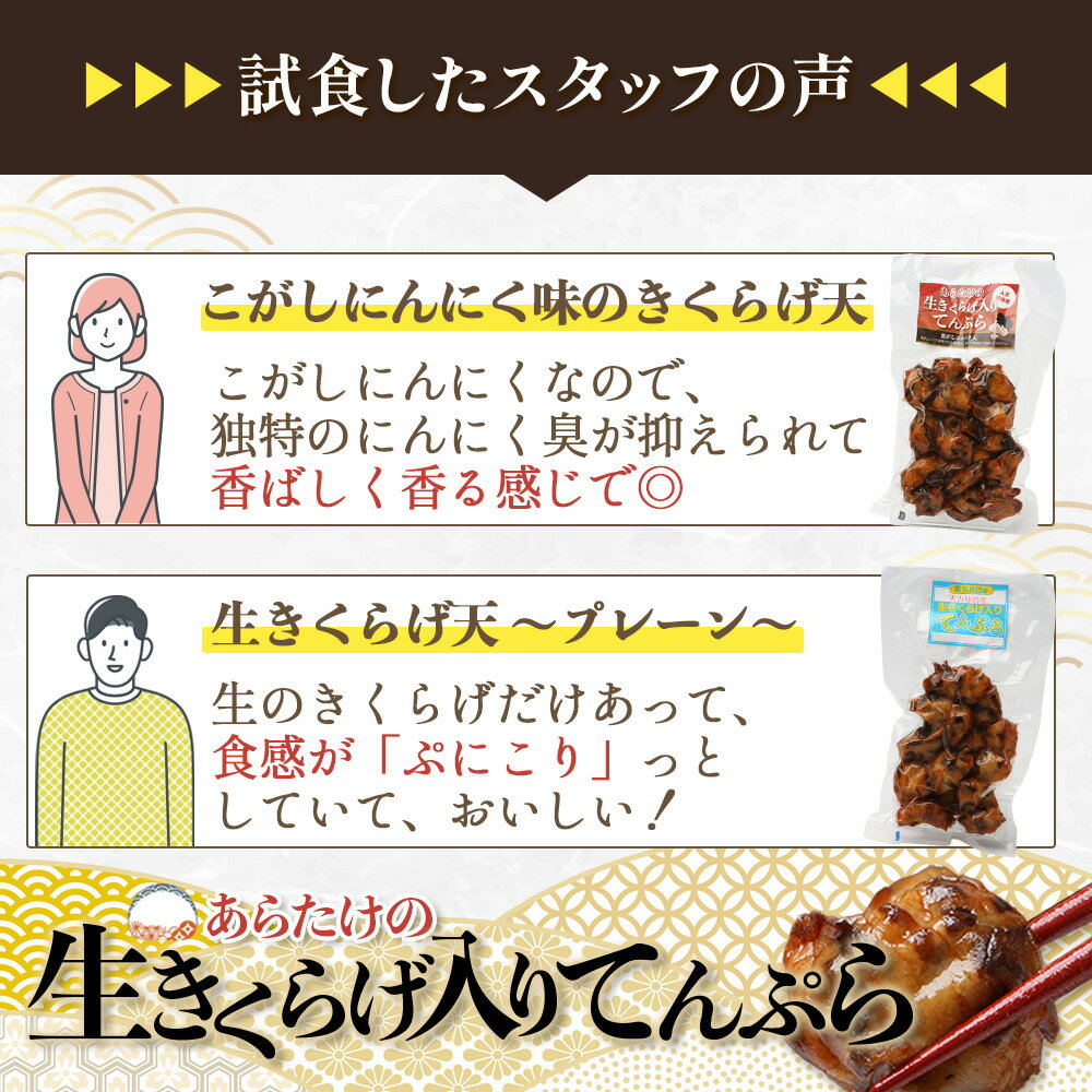 - 【ふるさと納税】2025年 熊本グッドプロダクト賞 受賞! あらたけの 生きくらげ入りてんぷらセット~焦がしニンニク入 プレーン 130g×4パック 組み合わせ 選べる 老舗蒲鉾店 蒲鉾 かまぼこ 生キクラゲ 練り物 魚介 魚 熊本県 多良木町 球磨郡