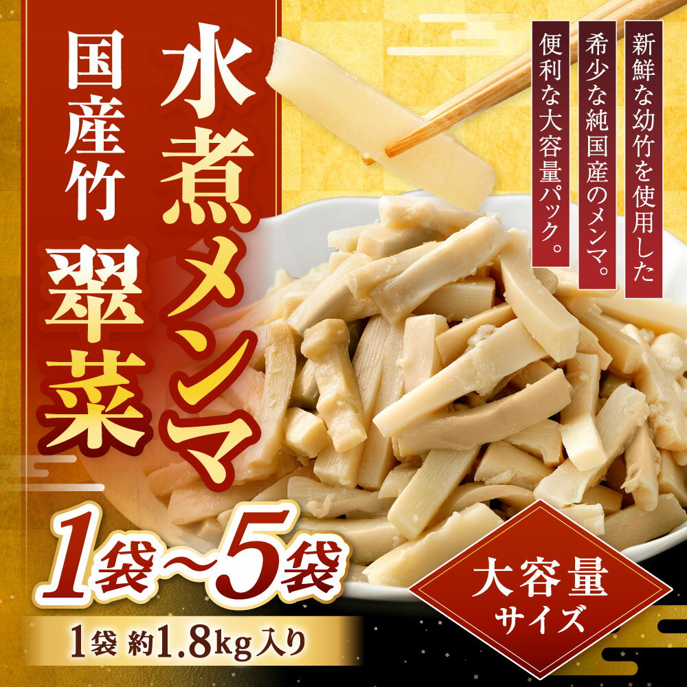 【ふるさと納税】水煮メンマ 国産竹メンマ「翠菜」 1袋約1.8kg 選べる 1袋 / 2袋 / 3袋 / 5袋 大容量サイズ メンマ 麺麻 合馬たけのこ 筍 タケノコ 水煮 国産 幼竹 希少 純国産 業務用 福岡県北九州市