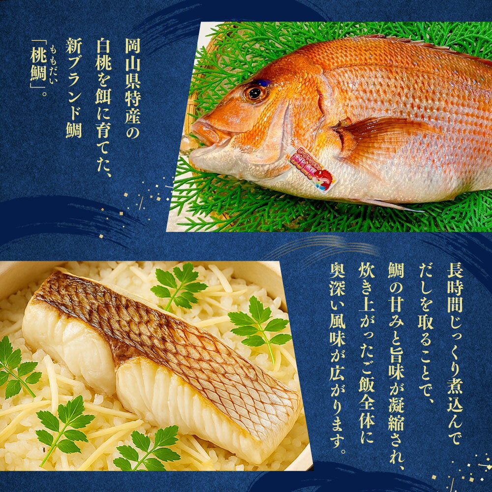 【ふるさと納税】岡山ブランド魚 桃鯛 鯛めしセット 桃鯛めしの具 合計:約1.1kg(約550g×2袋) 厚切り身(約150g×2)・桃鯛で作った鯛スープ(400cc×2) ももだい タイ 魚介類 水産物 白身 冷凍 高知県産 国産 岡山県 倉敷市 送料無料