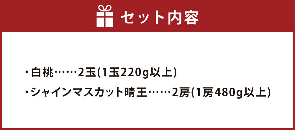 - 【ふるさと納税】桃 ぶどう 果物 詰合せ 白桃 2玉(1玉220g以上)・シャインマスカット晴王 2房(1房480g以上) 化粧箱入り 岡山県産 フルーツ 果物 ギフト 高級ぶどう 送料無料 【2026年7月下旬~8月上旬迄順次発送予定】