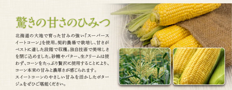 - 【ふるさと納税】スイートコーンポタージュ 10食セット《北海道 スーパースイートコーン 使用》|スープ ポタージュ レトルト 野菜スープ 無添加 無着色 砂糖不使用 常温保存 ヘルシー 低カロリー スープ 国産 野菜 ローリングストック レトルト食品 非常食 保存食 [2514]