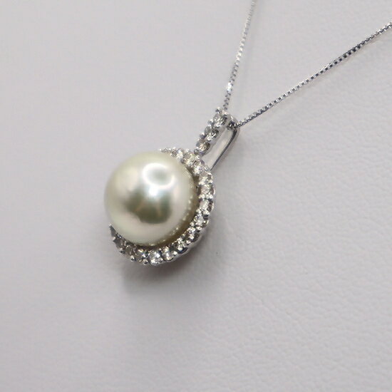 【ふるさと納税】1957 【大粒】K18WG 無調色あこや10.0mmup ダイヤモンド0.41ctペンダントネックレス