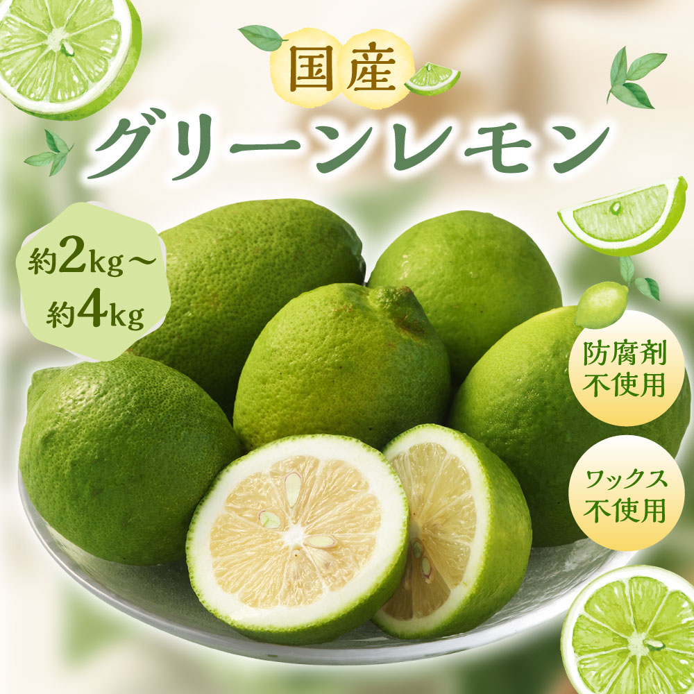 - 【ふるさと納税】国産グリーンレモン 約2kg~約4kg グリーンレモン レモン れもん 檸檬 果物 くだもの フルーツ 防腐剤不使用 ノーワックス 国産 静岡県産 静岡県 菊川市 送料無料【選べる容量】【2026年10月上旬~11月下旬まで順次発送予定】