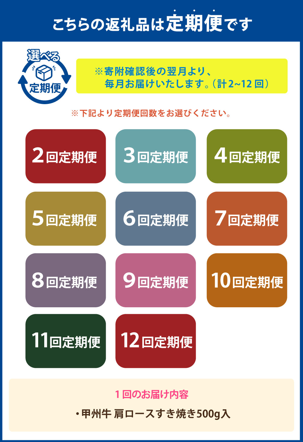 - 【ふるさと納税】<選べる定期便>甲州牛 肩ロース すき焼き 1回あたり約500g 1ヶ月毎 2回~12回 和牛 牛肉 お肉 すき焼 すきやき 冷凍 山梨県産 国産 山梨県 中央市 送料無料