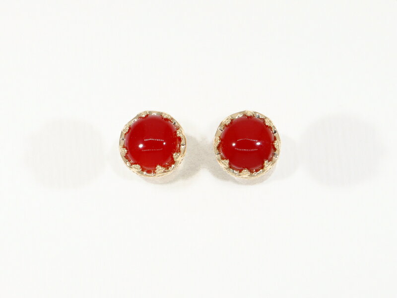 - 【ふるさと納税】< 甲府ジュエリー > ピアス ジュエリー レディース アクセサリー K18 イエローゴールド 王冠 シンプル 血赤珊瑚 ギフト プレゼント ジュエリーケース付 鑑別書付 保証書付 k076-066