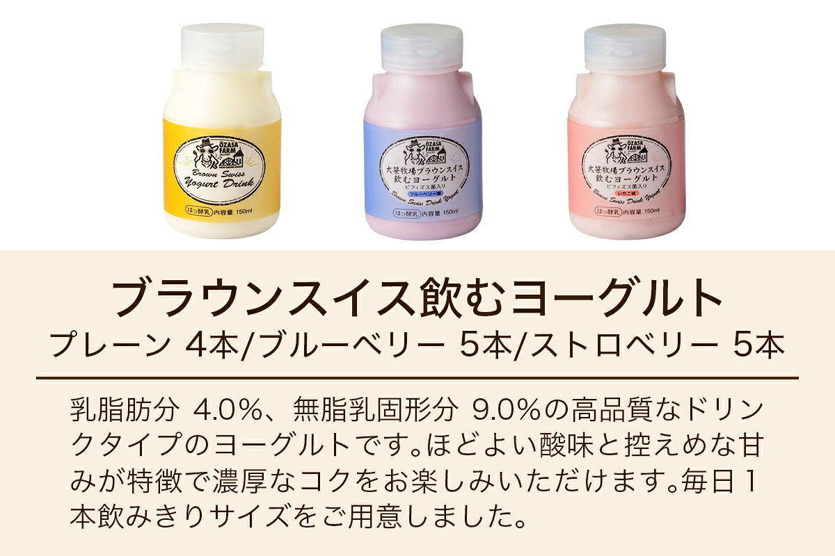 - 【ふるさと納税】大笹牧場 ブラウンスイス 飲むヨーグルトセット (プレーン/ブルーベリー/ストロベリー)|生乳 プレーン ストロベリー いちご ブルーベリー ヨーグルト ギフト スイーツ デザート 詰め合わせ アソート おやつ 贈答 人気 春 夏 秋 冬 [0845]