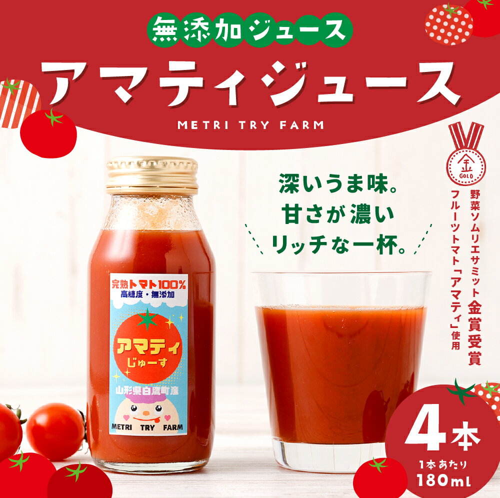 - 【ふるさと納税】アマティ ジュース 4本入 トマト とまと フルーツトマト 野菜 野菜ジュース トマトジュース 完熟 甘み うま味 リッチ 香り 濃縮 山形県 白鷹町 送料無料
