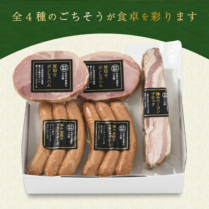 - 【ふるさと納税】平田牧場 特製ハムソーセージ 詰合せセット CHK23-6 冷蔵便 ※離島発送不可 ひらぼく お取り寄せグルメ 三元豚 厚切り ボンレスハム 荒挽き ソーセージ フランク プレーン チーズ ベーコン ブロック 国産豚肉 詰め合わせ BBQ おつまみ 酒田市