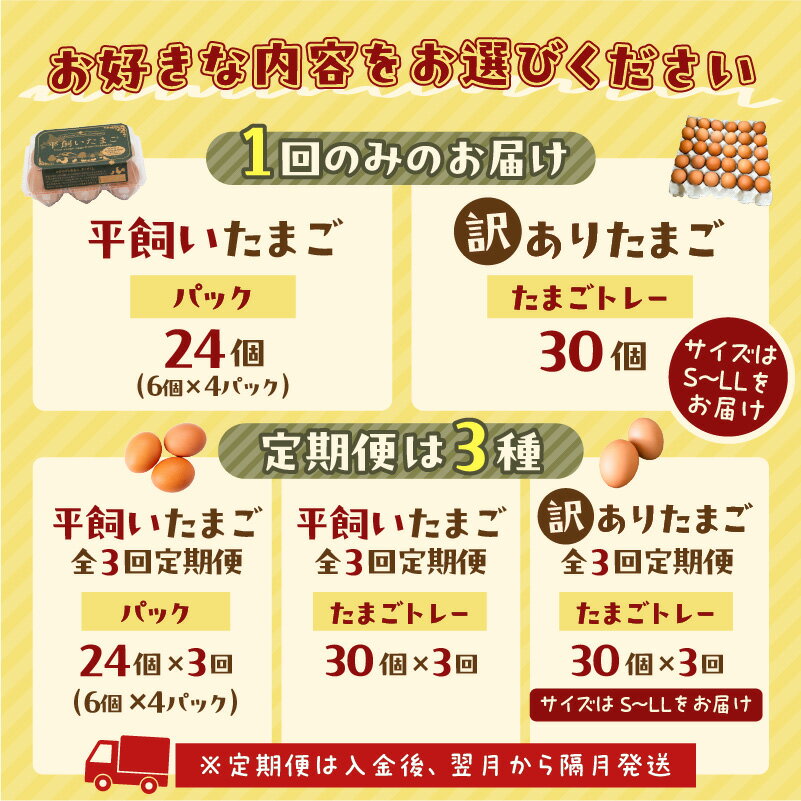【ふるさと納税】<選べる容量・回数> 平飼いたまご 24個 or 訳あり 30個 定期便 卵 たまご 鶏卵 玉子 生卵 タマゴ エッグ 平飼い 卵かけごはん HokkaidoGreenCompany 北海道 苫小牧市 おすすめ ランキング プレゼント ギフト