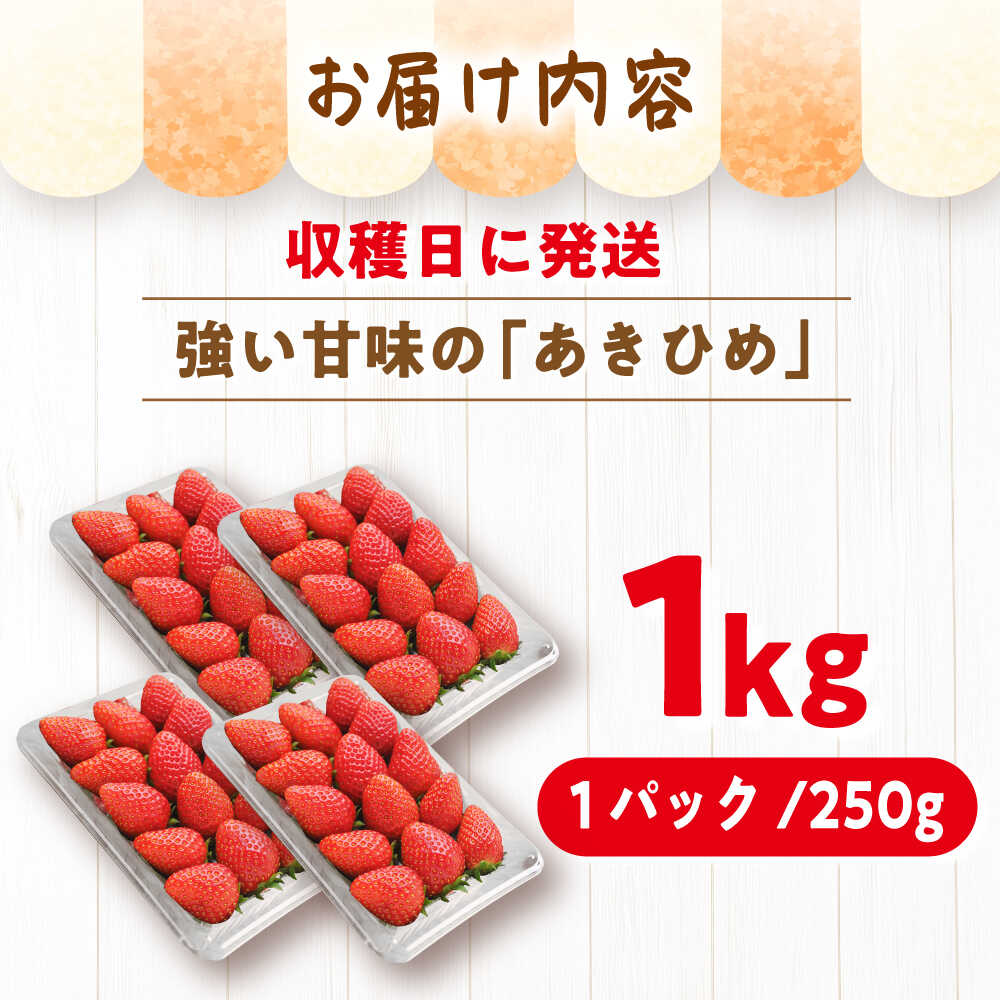 【ふるさと納税】【先行予約】【2026年1月上旬から3月下旬に順次発送】苺 あきひめ 250g×4パック / いちご イチゴ 苺 完熟 完熟苺 ストロベリー あきひめ 章姫 新鮮 果物 フルーツ 冬 冬限定 季節限定 ギフト 贈答 人気 おすすめ 産地直送 / 恵那市 / 阿部農園[AUGA003]