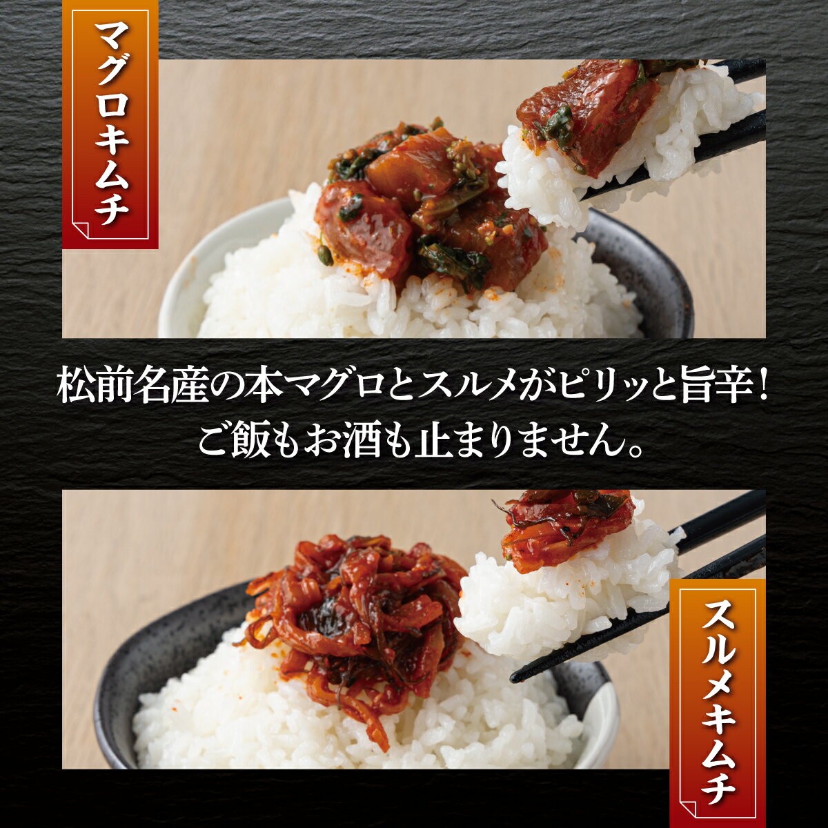 【ふるさと納税】マグロキムチ&スルメキムチセット 上野屋 冷凍 ごはんのおとも お酒のあて 肴 キムチ マグロ イカ 松前産 道産 北海道産 特産品 新鮮 美味しい 簡単調理 お取り寄せ グルメ 北海道 松前町 送料無料 MATB030