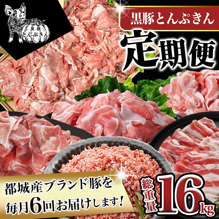 【ふるさと納税】【6回お届け!】「黒豚とんぷきん」定期便≪総重量16kg≫ - 都城産 黒豚とんぷきん しゃぶしゃぶ2kgセット/小間切れ3kg/大盛3kgセット 6ヶ月定期便 送料無料 T90-6-5901【宮崎県都城市は2年連続ふるさと納税日本一!】