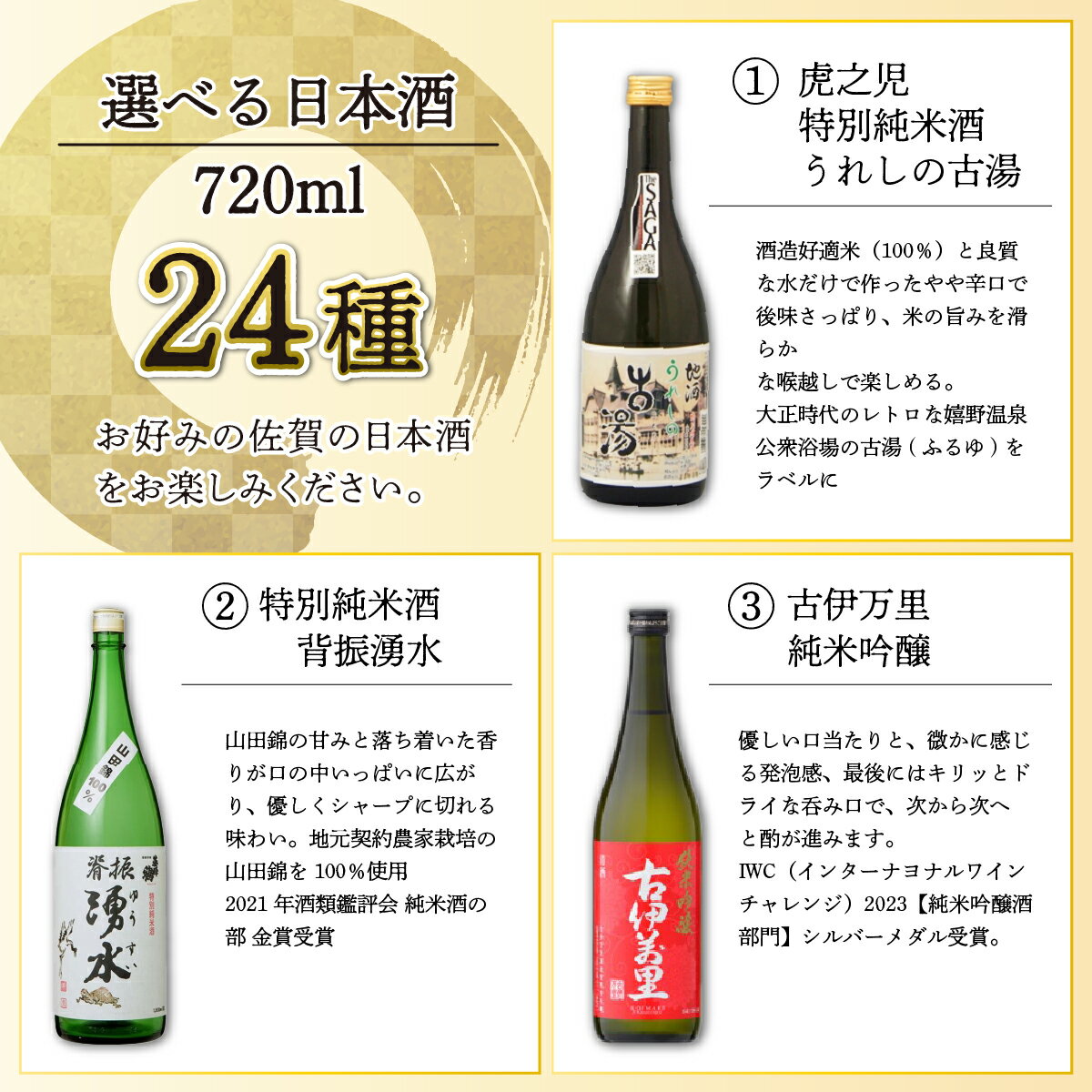 - 【ふるさと納税】選べる!TheSAGA認定酒 日本酒720ml 佐賀県 上峰町 日本酒 TheSAGA 認定酒 純米酒 純米大吟醸 特別純米酒 純米吟醸 虎之児 背振湧水 古伊万里 東長 天山 聚楽太閤 山田錦 松浦 光武 宗政 矢野肥前蔵心 幸姫 うれしの古湯 大唐津