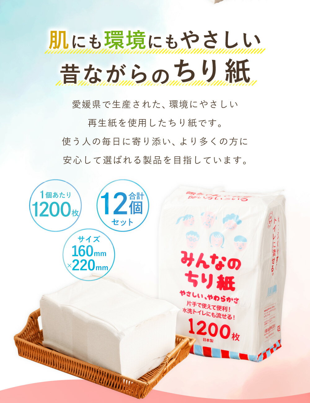 - 【ふるさと納税】みんなのちり紙 1200枚×12個 ちり紙 ちりがみ 古紙100% 再生紙 ペット お世話 介護 日常使い 家庭用 業務用 トイレ ティッシュペーパー 日用品 生活用品 生活雑貨 消耗品 防災 愛媛県 送料無料 (1025)