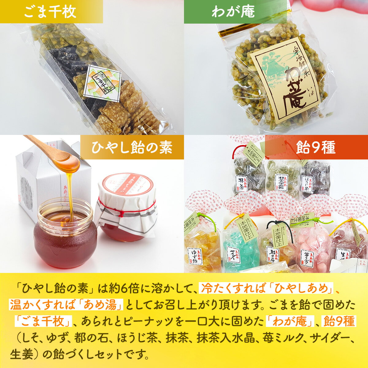 - 【ふるさと納税】いろんな飴を楽しめる!!京飴バラエティーパック 京飴 飴 ひやしあめ 水飴 あめ湯 ごま千枚 わが庵 しそ ゆず 都の石 ほうじ茶 抹茶 抹茶入水晶 苺ミルク サイダー 生姜 【uj-AM003】【岩井製菓】