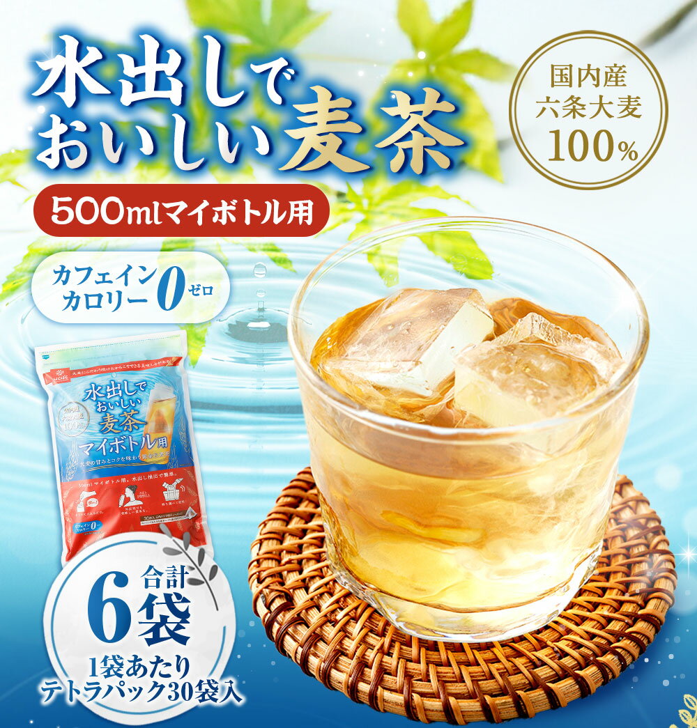 - 【ふるさと納税】水出しでおいしい麦茶マイボトル用 計1.8kg(300g(30袋)×6袋) 500ml マイボトル用 麦茶 むぎ茶 お茶 六条大麦 浅煎り焙煎 飲料 国産 山梨県 中央市 送料無料